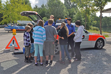 Die Polizisten erklären dir, wie sie mit den Polizeihunden arbeiten und wo diese eingesetzt werden. Du kannst einen Patrouillenwagen ganz genau ansehen und entdeckst, was alles in diesem Auto steckt. Die Schifffahrtspolizei zeigt dir das Polizeiboot und dessen Ausrüstung und macht danach mit dir eine kurze Rundfahrt auf der Aare.