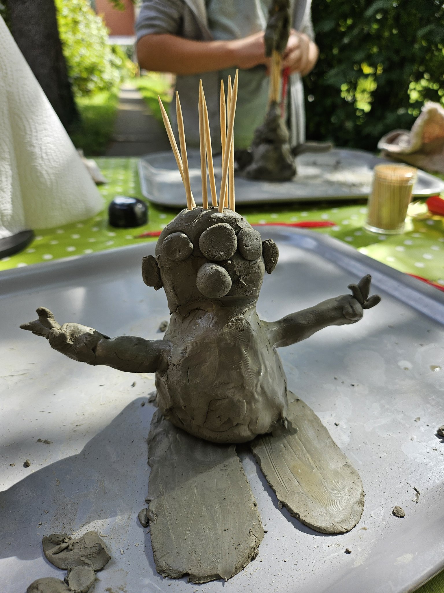 Du modellierst mit Ton ein Monster oder einen Vulkan.